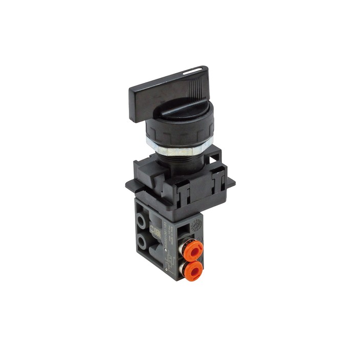 RIEGLER 3/2-Miniventil, manuell, Drehhebel, NC, monostabil, 4 mm seitlich